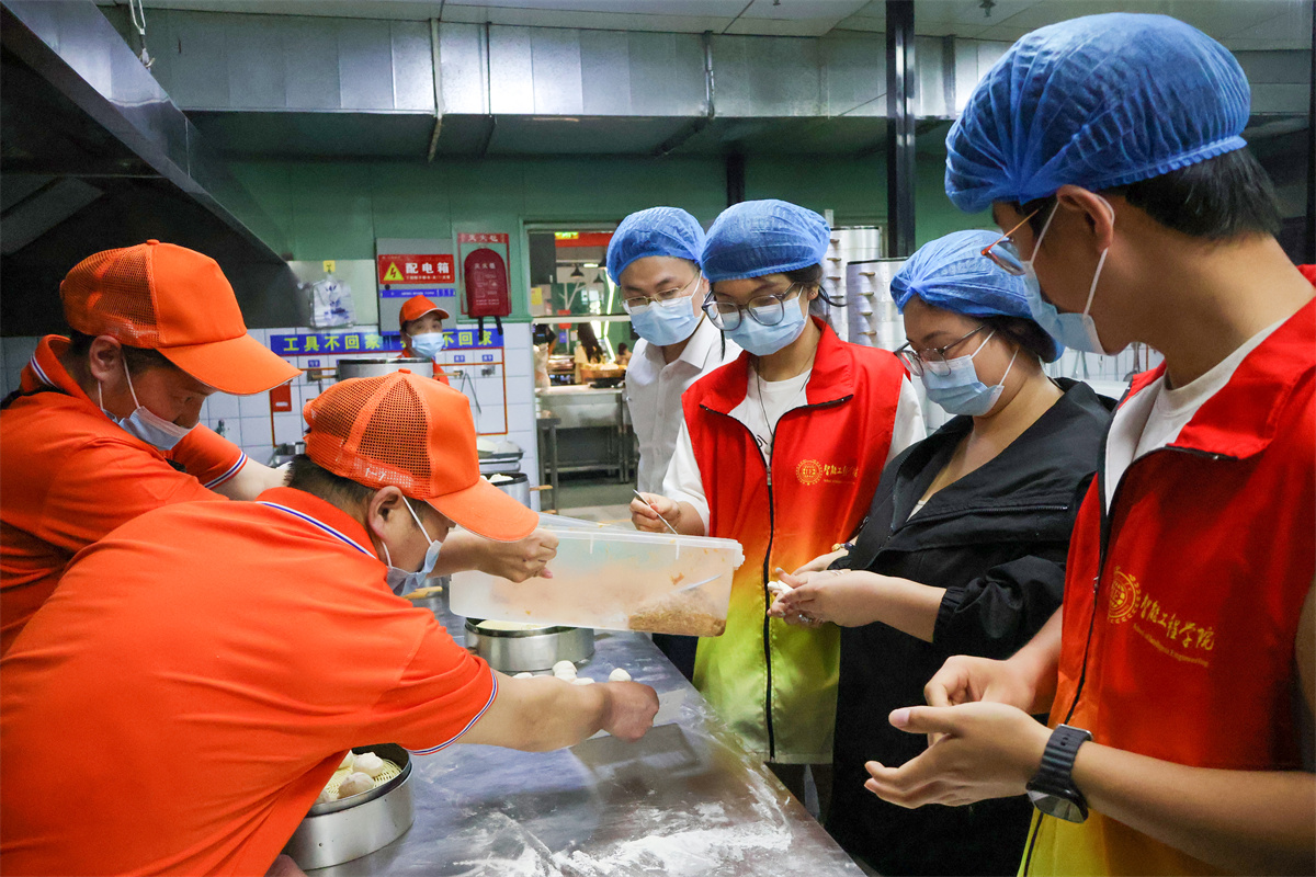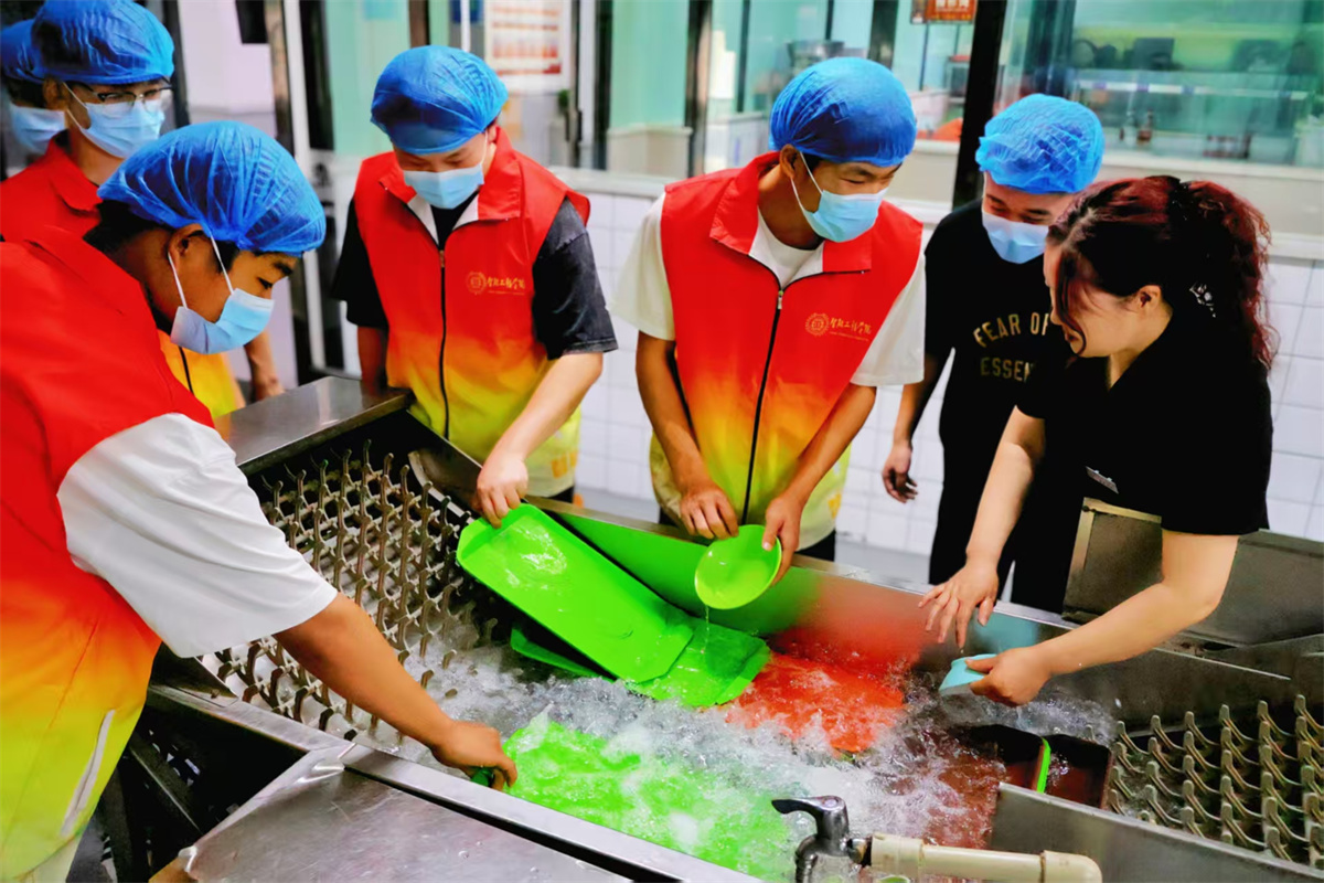同学们揉着发酸的手腕感叹:“原以为饭菜从窗口到餐桌只是几步路,现在才知道要经过食材储存、安全检查等多个环节。”而这些“沾着油烟”的感悟,成为同学们理解集体协作的第一课。后勤处负责人发言:“同学们在体验过程中发现的每个问题,都是我们改进的方向。我们会通过各种方式逐步解决,欢迎大家随时监督。”这场飘着饭菜香的对话,最终化作同学们口口相传的话语:理解是最美味的饭菜。当学生们开始通过台账本了解食材流转,用留样箱认识安全责任,这场关于食堂的体验活动,俨然成为劳动教育与成长担当的生动课堂。