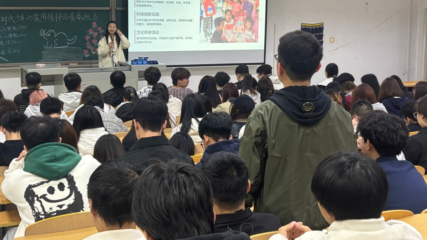 为厚植学生爱国情感,引导学生树立强国志向、践行报国行动,10月11日晚上,一场以“中国心,少年行”为主题的辅导员说完满活动在二号教学楼举办,辅导员张程程老师带领学生在对家国情怀与青春担当的深度探讨中,明晰成长方向,汲取前行力量。