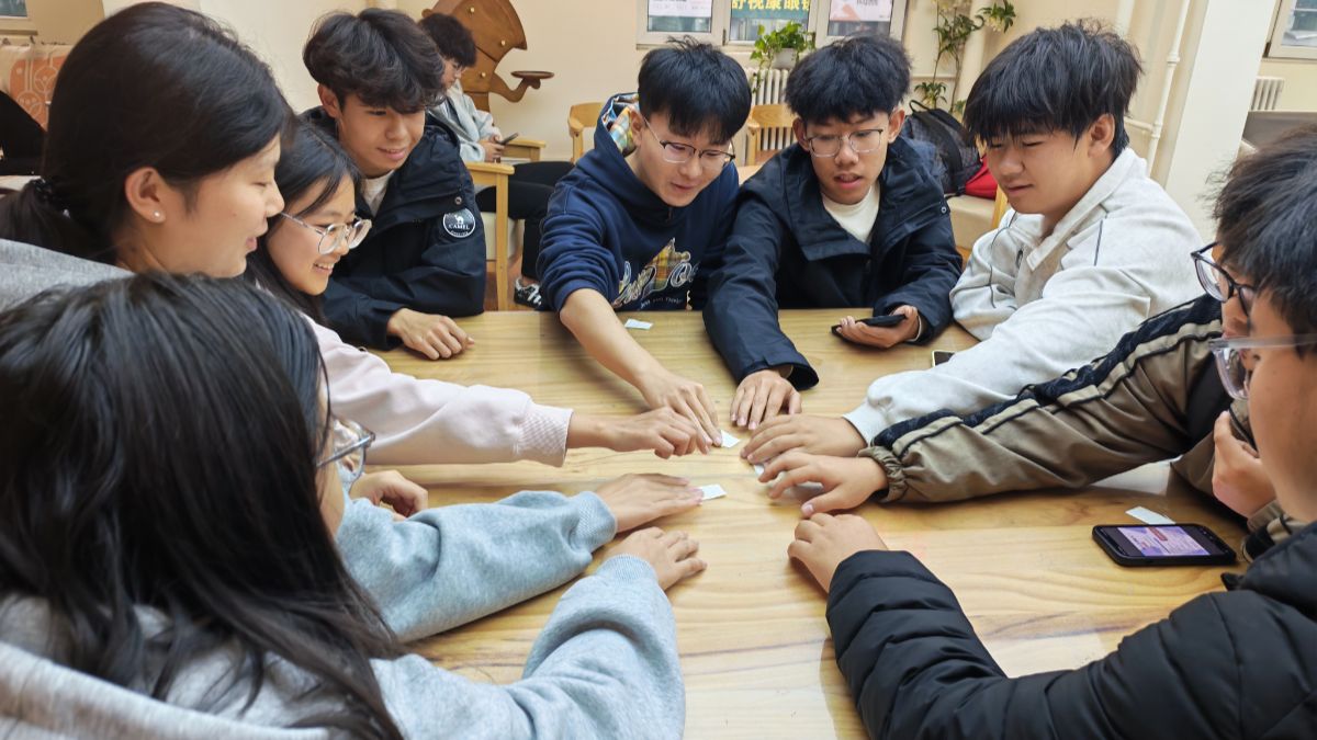 方寸桌间亦是展现青春风采的舞台,思维碰撞更能激发团队的深层联结。2025年10月16日下午,电子2502班在校园活动室成功举办“桌间趣战燃课间,局内欢声满班联”主题完满团支部活动,以别开生面的桌游体验丰富了同学们的课余生活,增进了彼此间的情谊。同学们从精心准备的身份纸团中随机抽取角色,很快便沉浸到游戏情境中。现场气氛愈发热烈:有的小组围坐一桌,专注讨论战术策略;有的小组因队友的精妙操作而欢呼雀跃;更有同学在关键时刻出奇制胜,赢得阵阵掌声。智慧的火花在交流中迸发,友谊的种子在互动中萌芽,每位同学的脸上都洋溢着参与其中的快乐。本次完满团支部活动以桌游为媒介,让同学们在轻松愉悦的氛围中既放松了身心,又提升了沟通协作能力。
