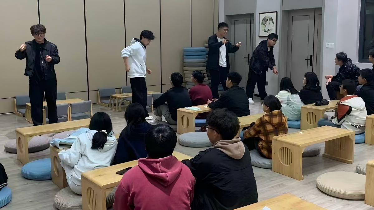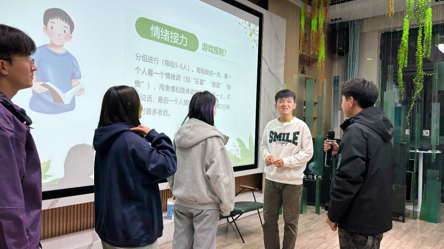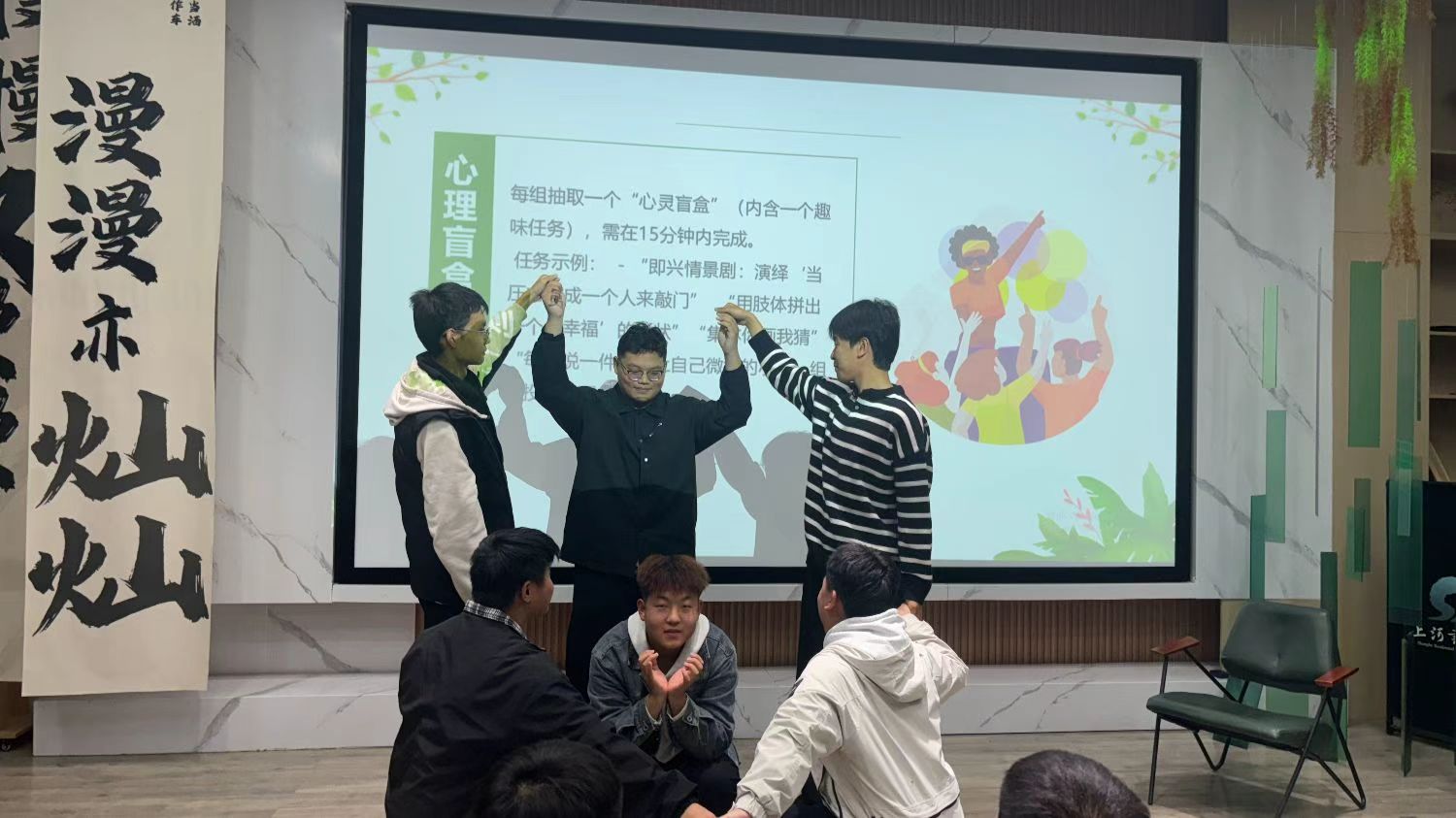 为帮助新生快速融入大学环境,缓解入学不适,10月12日晚上,机制(对口)2501班50名大一新生齐聚上河书院206竹林•围炉夜话,在趣味互动与专业指导中,开启了一场温暖的“心灵成长之旅”。活动首个环节“情绪接力”以小组协作的形式拉开序幕。同学们进行自由组队,每组5-6人,各组依次在指定区域排成一列。随着心理委员一声“开始”,首名成员迅速走到心理委员面前,抽取写有“狂喜”“委屈”“骄傲”“焦虑”“感动”等情绪词的卡片,随后转身面向第二名成员,仅通过表情与肢体动作传递情绪。“情绪接力”环节结束后,活动进入充满惊喜与创意的“心灵盲盒”环节。心理委员为每组准备了一个色彩鲜艳的“心灵盲盒”,盒内装有不同的趣味任务卡片,同学们需在15分钟内共同完成任务,充分发挥想象力与协作能力。随着“心灵盲盒”环节的结束,活动进入舒缓身心的“笑声瑜伽”环节。此次“缘起新程,心灵相邀”心理健康主题活动,不仅为同学们搭建了交流互动的平台,更提供了实用的心理调适方法,有效缓解了入学焦虑,为同学们的心理健康保驾护航,助力他们在大学的沃土上健康成长、全面发展。