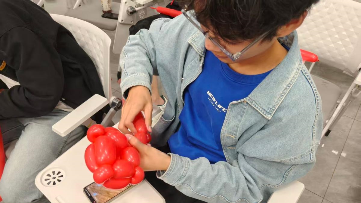 为弘扬红色精神,创新爱国主义教育形式,机制2501班于10月15日下午在上河书院213自如·完满超级空间举办了以“双节同庆,情满中国节”为主题的完满团支部活动。此次活动为联合气球造型协会进行的创意手工活动,活动巧妙地将象征团结、幸福与平安的中国结这一经典传统文化符号,与充满现代可塑性的气球艺术相结合,以新颖独特的“气球中国结”为载体,为同学们带来了一场沉浸式的红色文化体验。一根根普通的气球,经过巧手拧转、编织、固定,逐渐呈现出中国结的轮廓与神韵。这个过程不仅是手艺的学习,更是精神的凝聚。大家在一缠一绕间,感悟传统技艺的精妙;在一接一扣中,体会同心协力的内涵。当一个个色彩鲜艳、造型别致的“气球中国结”最终完成时,现场洋溢着成就与自豪的欢声笑语。这次将传统技艺与现代艺术相融合的尝试,让同学们收获了创作的成就感。这段新奇而难忘的经历,如同一粒种子,已在他们心中生根发芽;它更是一个美好的开端,标志着我们正以更青春、更当代的方式,携手走向红色教育的深处,在传承与创新中继续探寻那些历久弥新的精神力量。