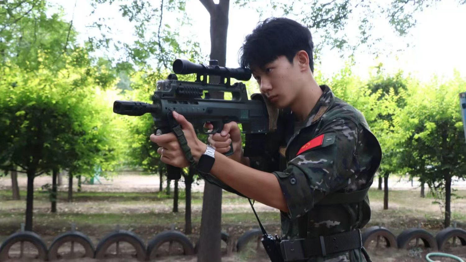 首训时,新生们眼中写满好奇,实操时却状况频出:有人握枪姿势僵硬,有人一紧张就忘了战术。印象最深的是一个总是躲在队尾的腼腆男生。我陪他从观察掩体开始,一步步练习配合与侦查。后来,他不仅敢主动出击,还在关键时刻报出敌人位置,帮助队伍获胜。当他兴奋地跑来说:“教官,我做到了!”的那一刻,我所有的紧张都化为了成就感。