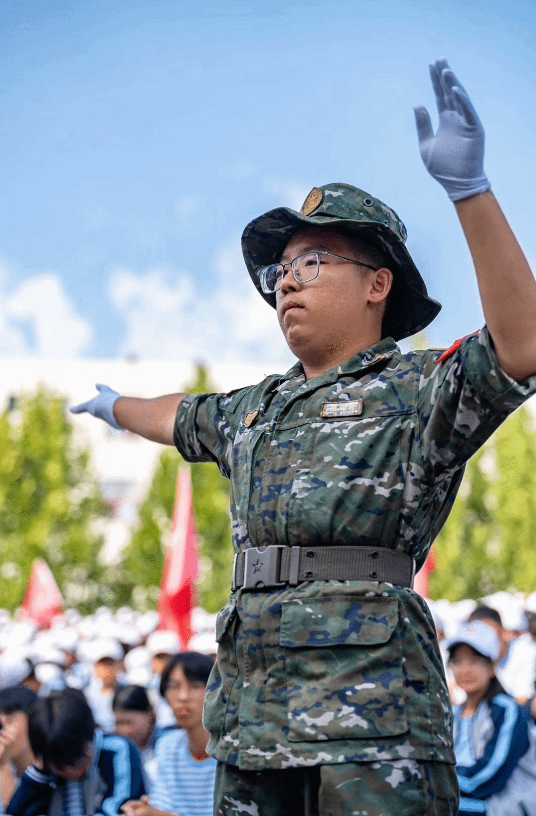 在这个收获的季节里,田径运动场上,除了朝气蓬勃的新生,还有一群特殊的人——他们既是学长学姐,更是身穿迷彩、肩扛责任的军训教官。从“受训者”到“带教者”,他们将军训赋予的坚毅与热血,转化为温度与力量。让我们一同走进他们的迷彩世界,见证他们的带训故事。