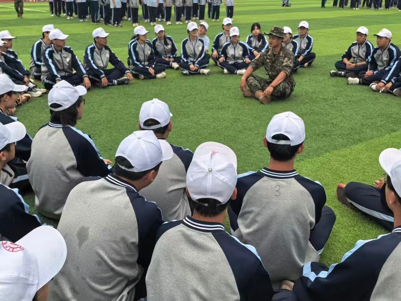 休息时,我更愿成为你们可信赖的学长。我们坐在场边,聊军营故事,谈责任、成长与理想。你们眼中的光芒、爽朗的笑声和真诚的交流,让我感受到凝聚的力量——那是信任与陪伴带来的温暖。